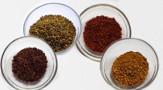 Set of Middle Eastern Spices: Zaatar, Aleppo Pepper, Sumac and Dukkha