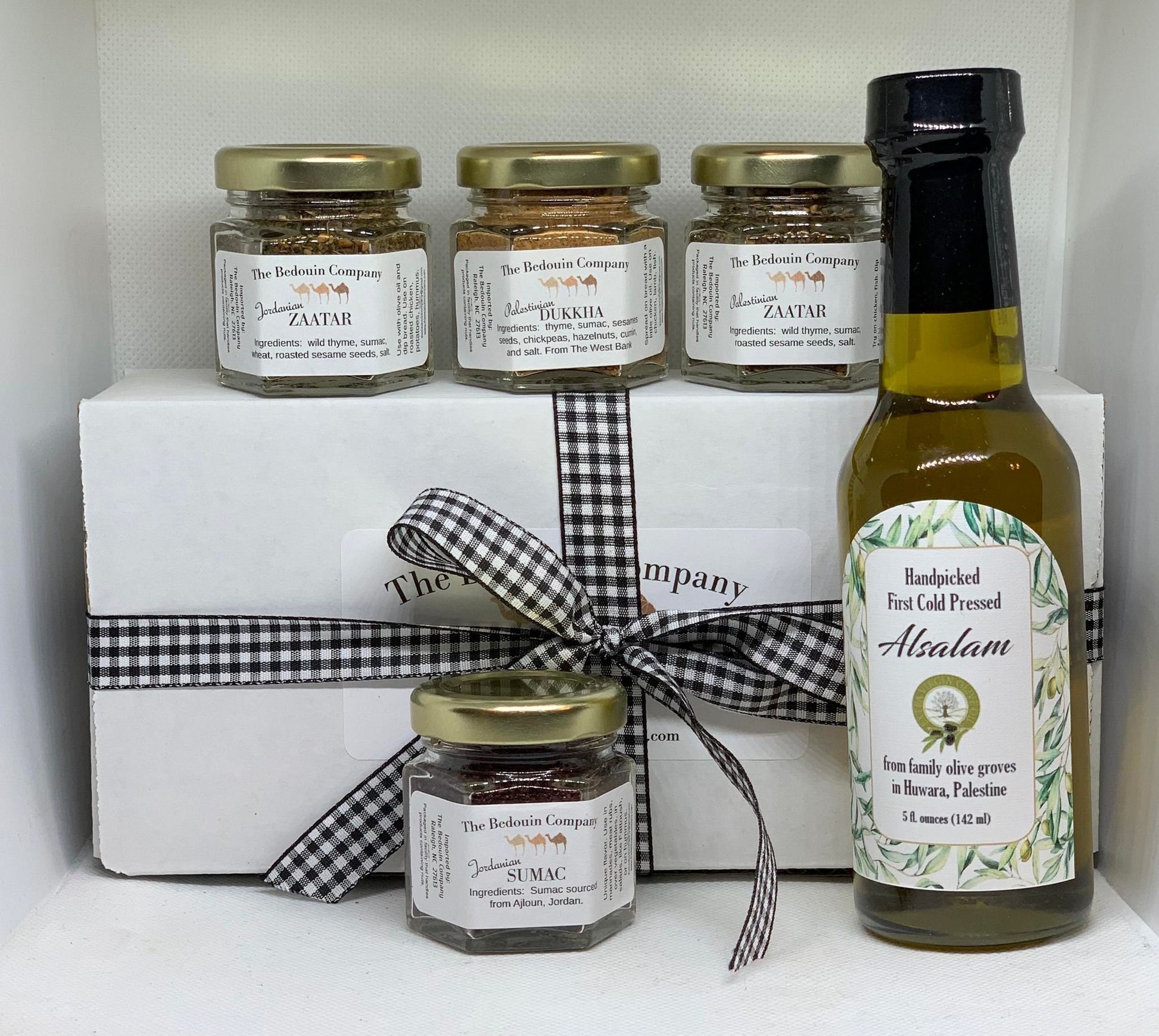 This gift set introduces recipients to a sample of herbal seasonings from Jordan and Palestine. Included are:
