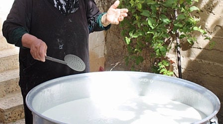 The tradition of making this dried yogurt has long been an essential part of Jordan’s cuisine and culture, and the product is one of the key ingredients used in the preparation of mansaf, Jordan’s national dish. Jameed is also employed in a variety of other traditional dishes such as al-rashoof soup and shakreyeh. Some bold chocolatiers have even combined the pungent, tangy dried yogurt with chocolate. (It’s an acquired taste.)