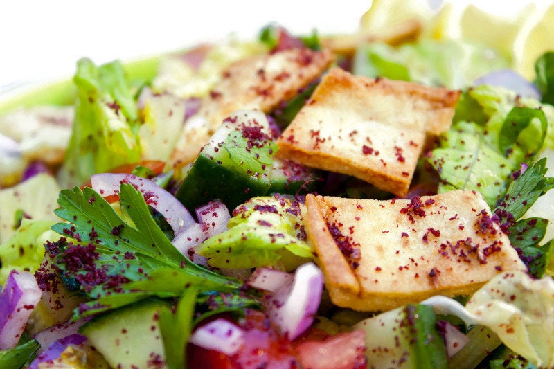 It’s used in salads, like Fattoush, cucumbers, used on grilled meats and fish. It also enhances hummus when sprinkled on top. I use it in one of my favorite dishes: chicken musakhan, which is shredded chicken, sumac, grilled red onion wrapped in shrak.