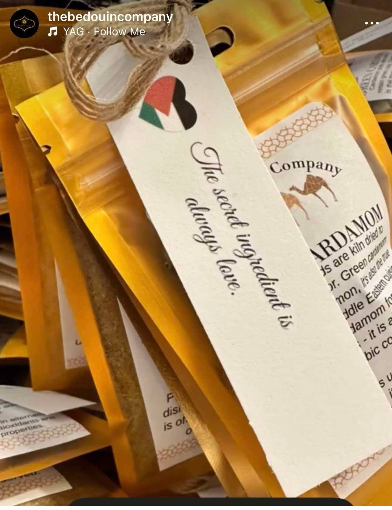 - The tag with "the secret ingredient is always love" will contain the Palestinian flag;